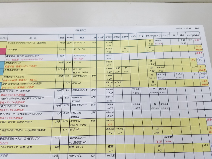 手配済項目の工程表を作成します
